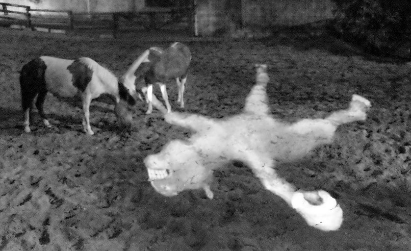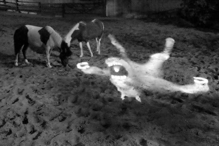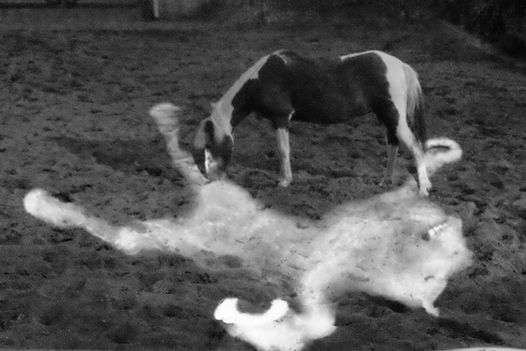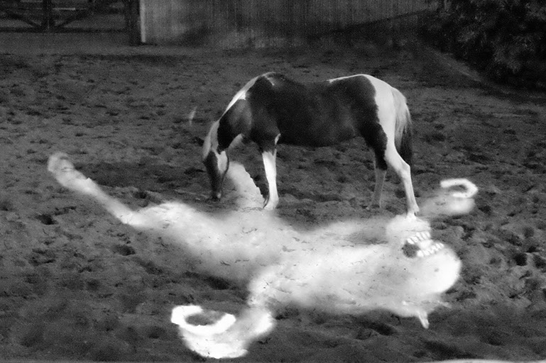 まわるうまは、うまの砂場の中にやってきました。うまは、きょうみがあるようなかっこうをしたり、しなかったり。うまとまわるうまのかかわりをかんさつしました。